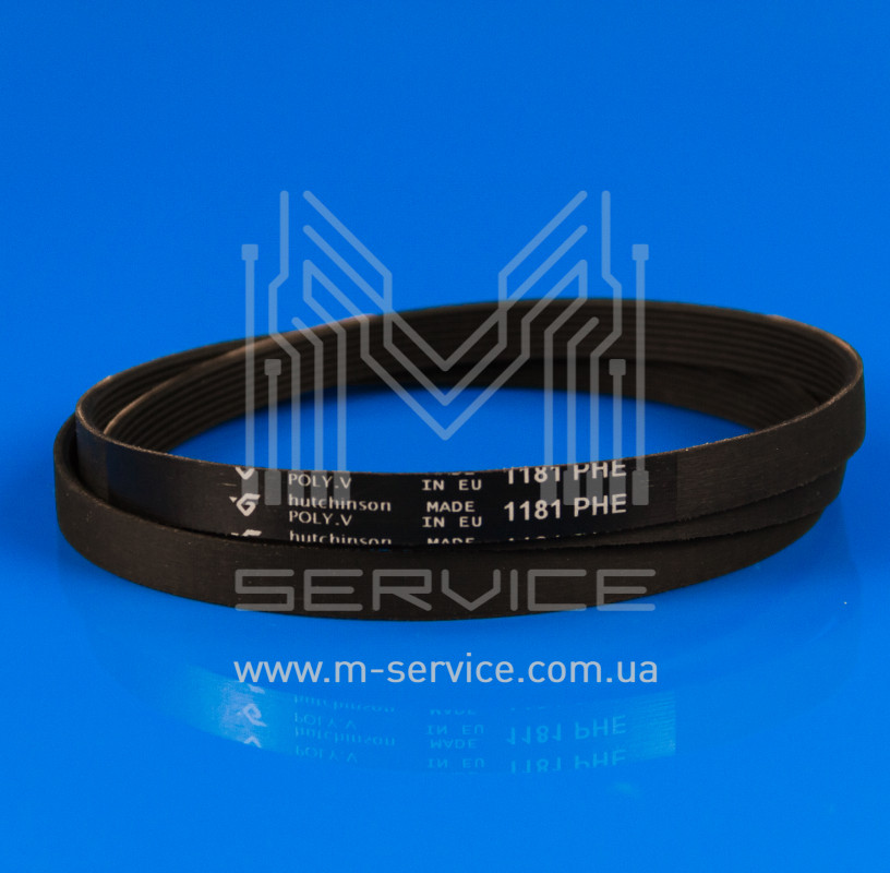 Плоский привідний поліклиновий ремінь пральної машини, модель 1181 H7 EL «Hutchinson», встановлюється на автоматичні пральні машини виробництва Indesit, Ariston.
