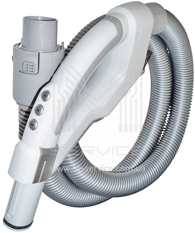Отже, модель 1131404632 розроблена для пилососів бренду Electrolux. Шланг виконаний із міцної та надійної гофрованої трубки, укомплектований ергономічною ручкою з трьома кнопками для керування. Користувач може безпосередньо на ручці відрегулювати потужність пилососа та вимкнути агрегат за потреби. На іншому кінці шлангу є пластиковий фіксатор для встановлення в пилосос.