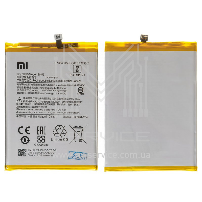 Акумуляторная батарея bn56 xiaomi redmi 9a\ redmi 9c\ redmi a1, li-polymer, 3,85 b, 5000mah (46020000425d)