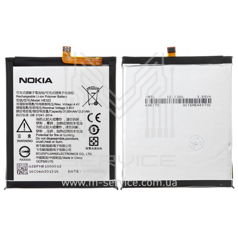 Аккумулятор HE322, Nokia 7 (TA-1041), Li-Polymer, 3,85 B, 3120 мАч