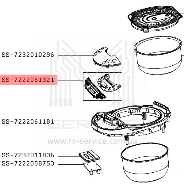 Плата управления ss-7222061321 для мультиварки moulinex mk611832, rk611825, оригинал (ss-7222061321)