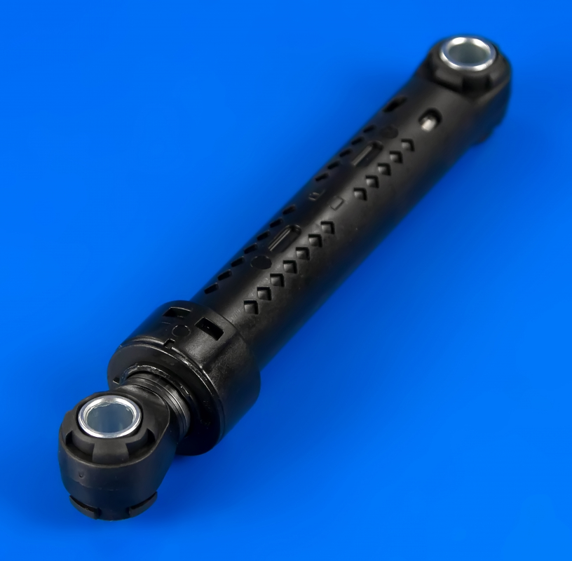 Амортизаторы необходимы для того, чтобы смягчить колебания бака стиралки в процессе стирки и при отжиме белья. Благодаря таким деталям машинка не дребезжит во время отжима и не вибрирует.