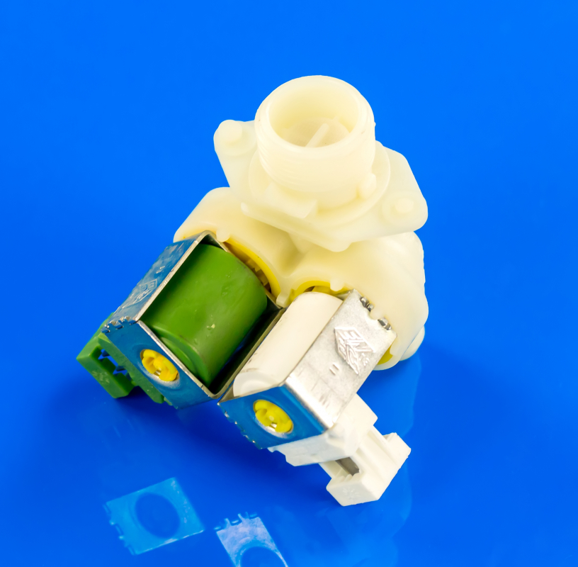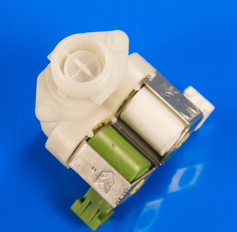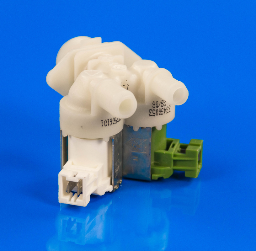Впускной клапан 132506301 - деталь для СМА от Electrolux. Данный клапан предназначен для подачи жидкости в барабан стиральной машины, когда выполняется стирка или полоскание белья. Впускной клапан закрыт, если электричество не подается. Когда же в катушке возникает электрическое поле, то металлический шток опускается и затем мембрана пропускает воду.