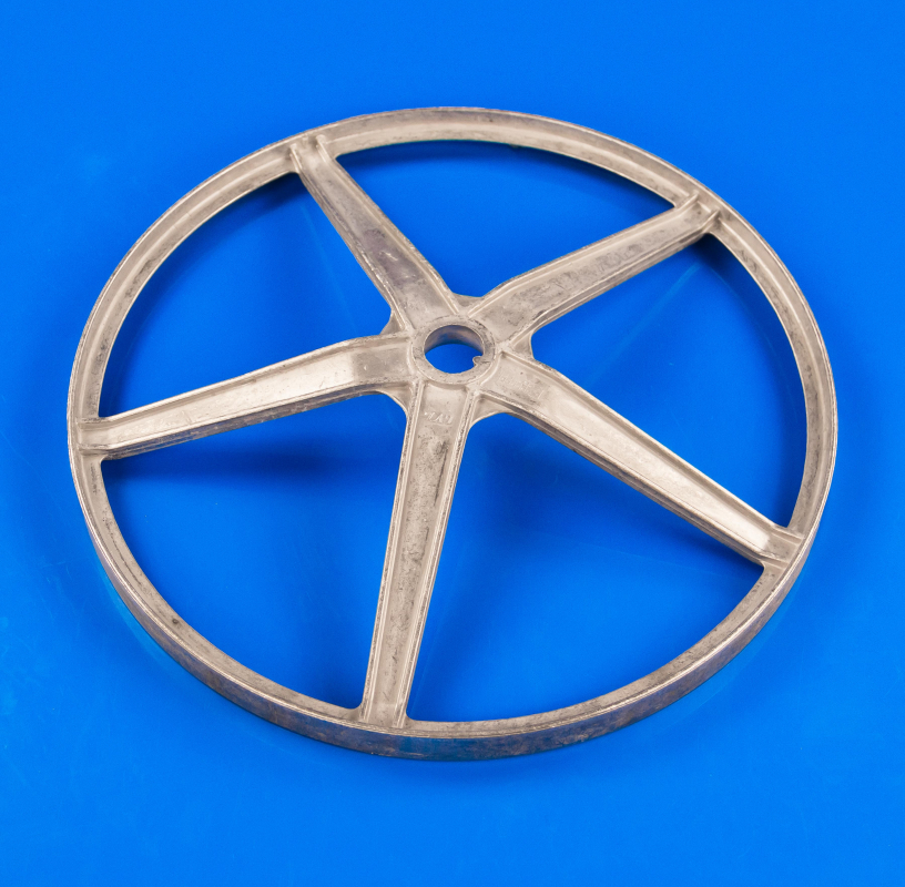 Как мы уже отметили, вращение барабана происходит благодаря шкиву, электродвигателю и ремня. Колесо состоит из маленького, большого колец, что соединены ребрами. Представленная запчасть устанавливается к задней стенке бака и вала барабана, с гайками и болтами.