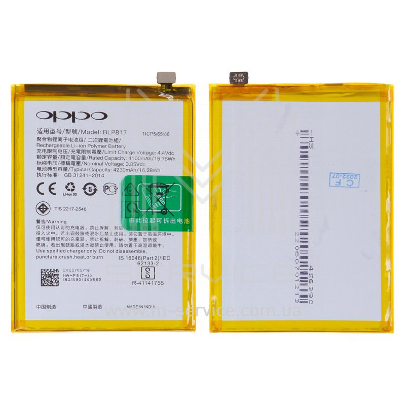 Аккумулятор BLP817 Oppo A15, A15s, Li-Polymer, 3,85 B, 4230 мА