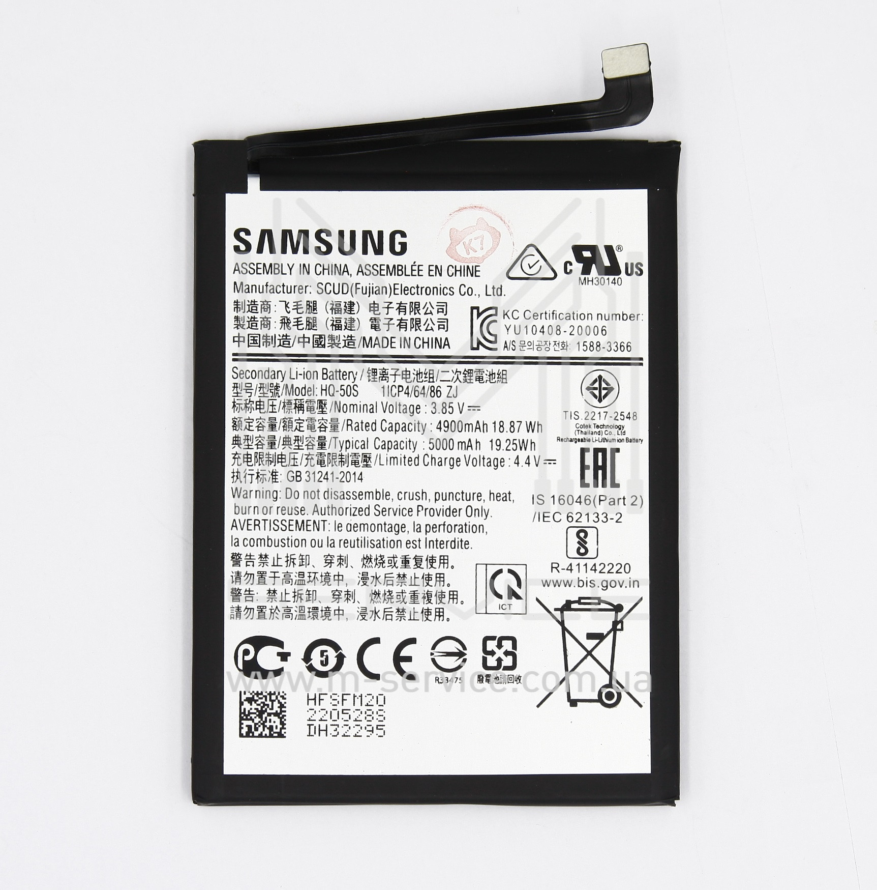 Акумулятор HQ-50S Samsung A025F/DS Galaxy A02s, A035F Galaxy A03, A037F Galaxy A03s, Li-Polymer, 3,85 B, 5000 мАч