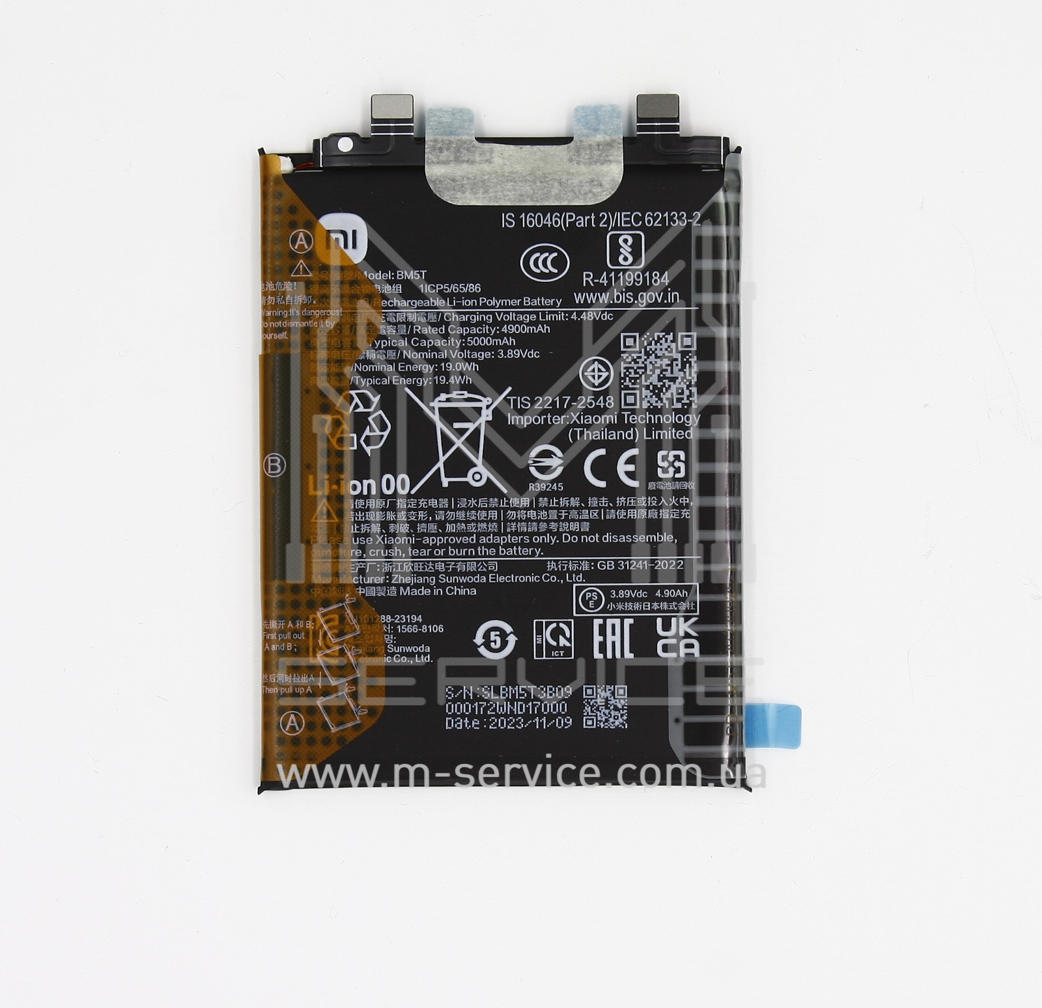 Акумуляторна батарея BM5T Xiaomi 13T/ Poco X6 Pro 5G/ Redmi Note 13 Pro/ Poco M6 Pro 5000mAh, оригинал (1330102000110B)