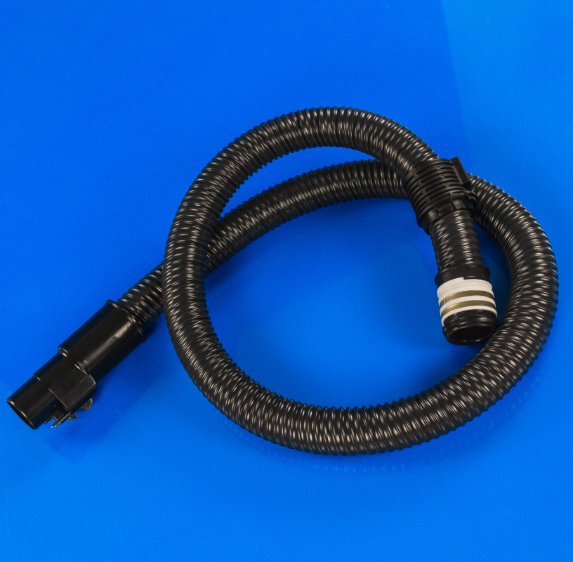 Виконаний цей елемент у вигляді довгої гофрованої трубки. Шланг поставляється у зборі з кріпленням до пилососу, без ручки для труби.