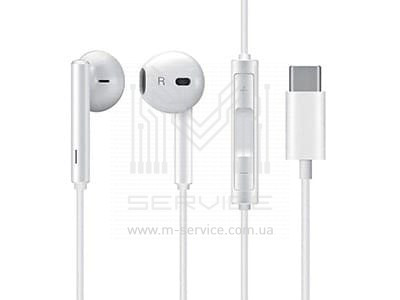 Нaушники проводные, с микрофоном Type C, 1,1м, White Huawei P20 Pro (charlotte-L29c)/ (emily-L29c)/ Mate 10 (BLа-L29с)/ P30 Pro (VOG-L29) (Earphone,Digital Type C-Length 1100mm,Stereo With Mic-Semi-In Ear-Plastic)