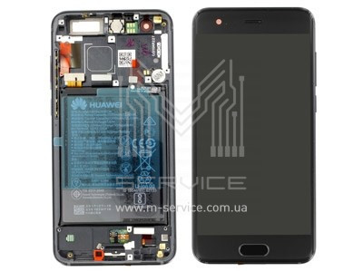 Дисплей в сборе с сенсором, батареей, динамиком разговорным, виброзвонком, черный Honor 9 (STF-L09)