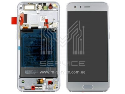 Дисплей в сборе с сенсором, батареей, динамиком разговорным, виброзвонком, silver Honor 9 (STF-L09)