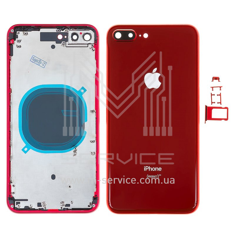 Корпус Apple iPhone 8 Plus, красный, с держателем SIM-карты, с боковыми кнопками