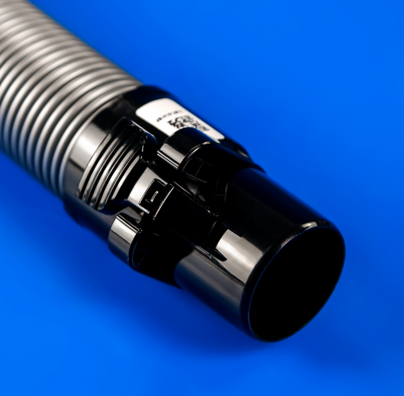 Виконаний шланг у вигляді гофрованої трубки. На одному кінці цього елемента знаходиться пластикове кріплення, необхідне для з'єднання з корпусом пилососа, а на іншому – спеціальна трубка фіксації для телескопічної труби.